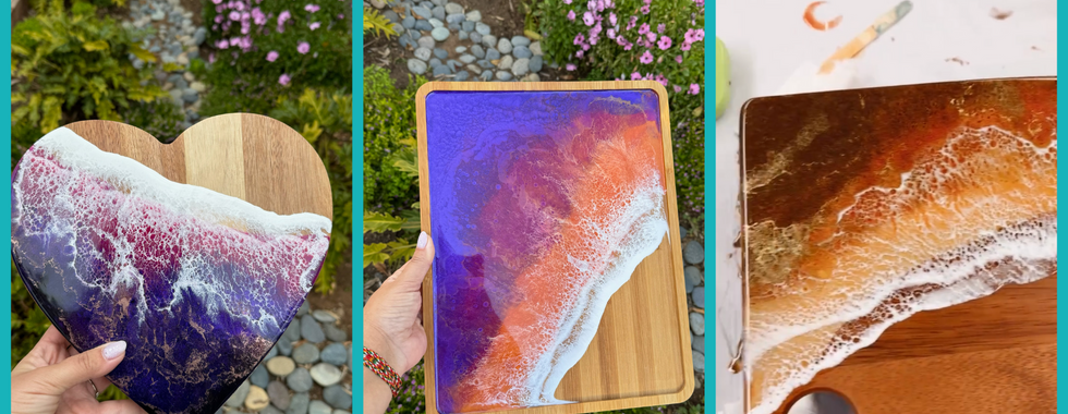 Learn the secrets of Epoxy Resin Art and create a Gorgeous Ocean Charcuterie Board with Art Magic!